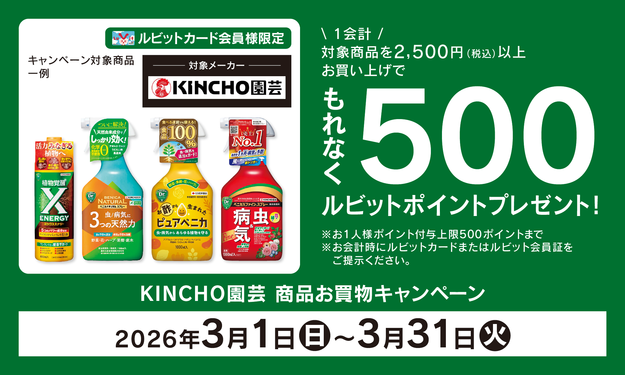 【ルビットカード会員様限定】KINCHO園芸商品お買物キャンペーン!