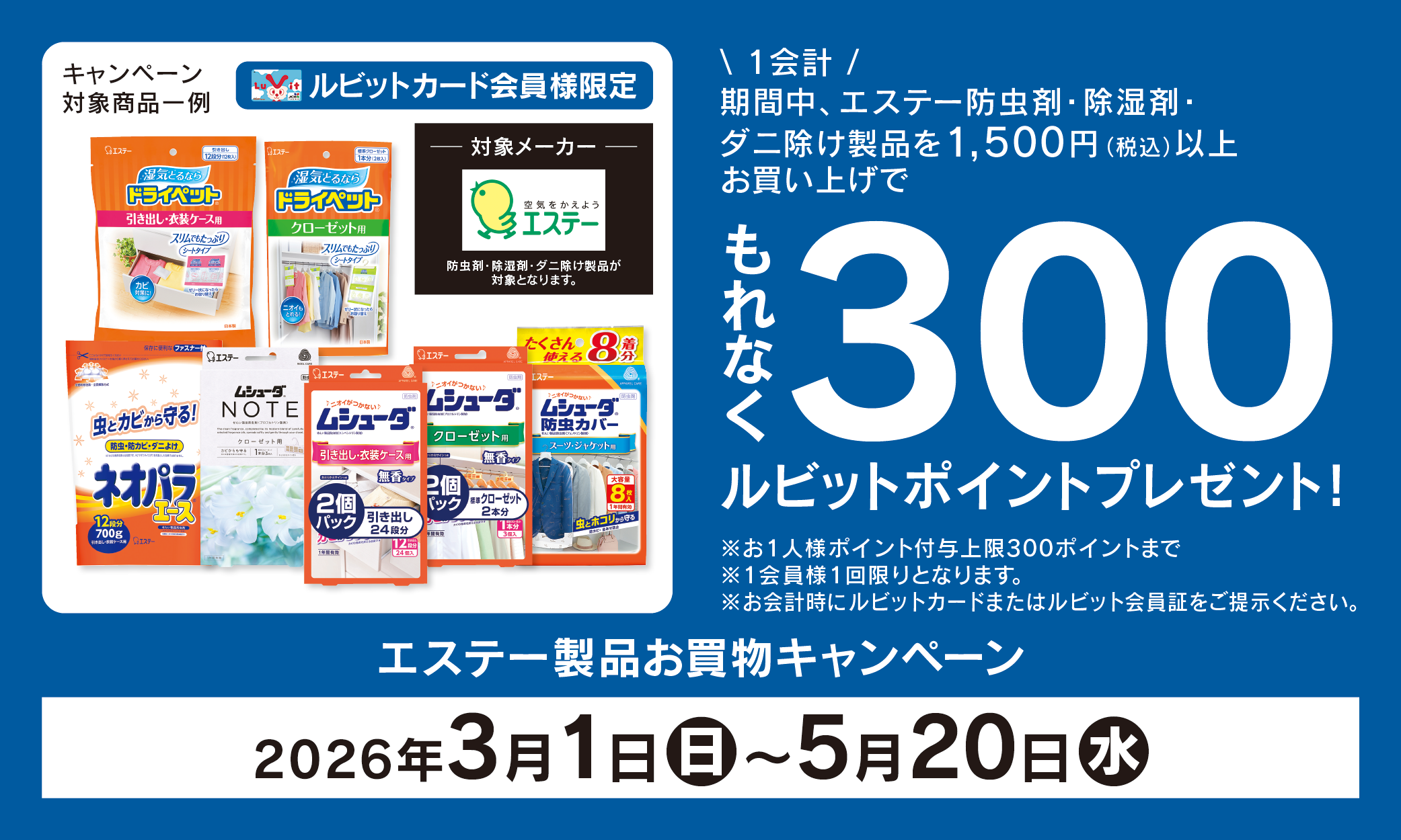 【ルビットカード会員様限定】エステー製品 お買物キャンペーン!