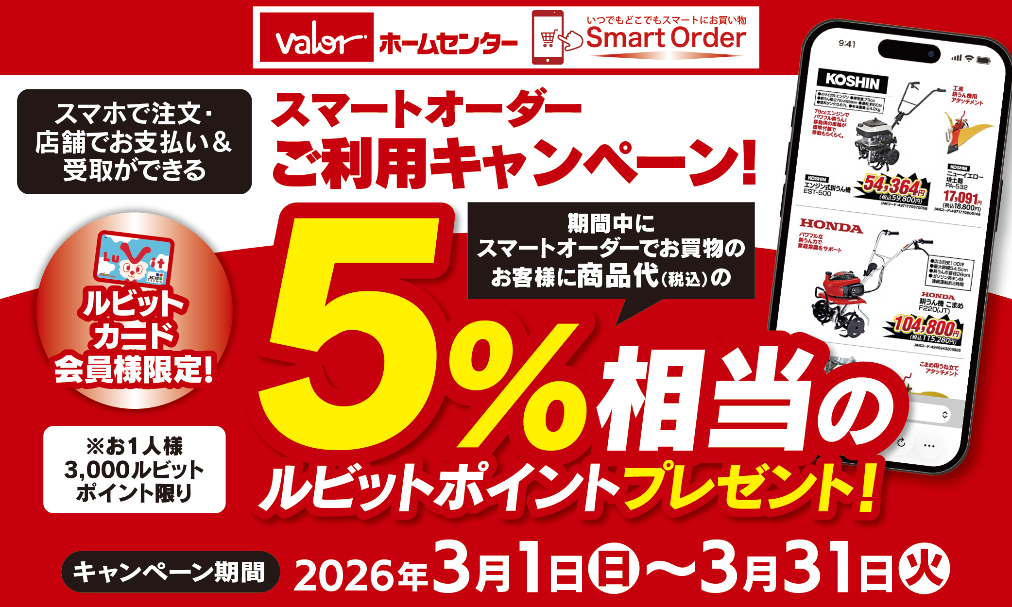 【ルビットアプリ会員様限定】ホームセンターバロー春の感謝祭