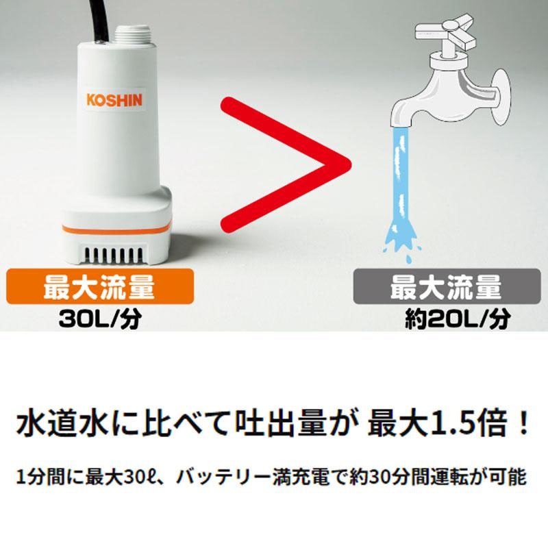 工進 充電式水中ポンプ SSP-1820 18V 2.0Ah 揚程17.5m 30L/min 口径20mm 清水用 バッテリ・充電器付 KOSHIN