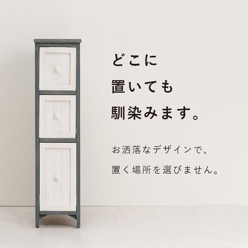 萩原 チェスト MCH-5670AW アンテークホワイト すき間収納 スリムラック 引出 サニタリー ランドリー