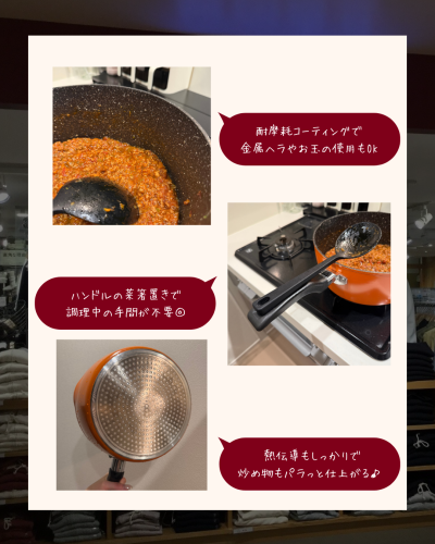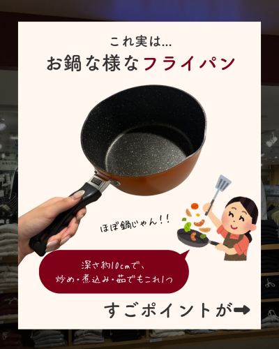 フライパンと鍋が合体している感じで、フライパンとしてもしっかりコーティングされていてするするで便利だし、煮込み料理などもお鍋としても作れちゃう👌