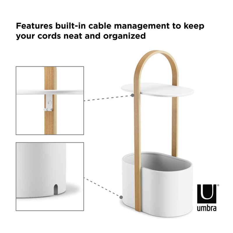 ケーブルをスマートに収納できる設計になっており、スマートフォンやタブレットをテーブルの上に置いて充電するときに便利です。
