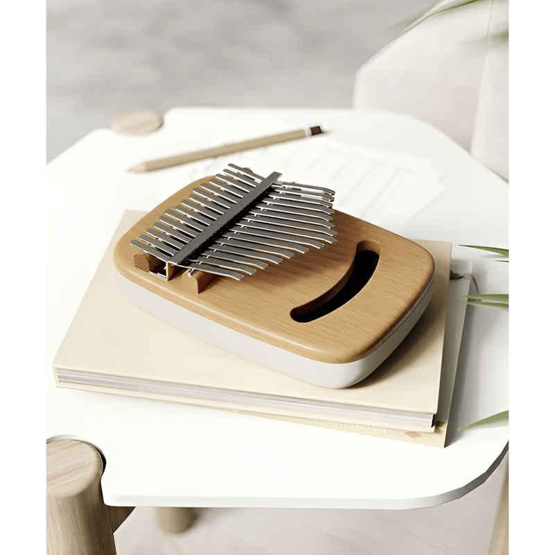 カリンバは、金属製の鍵盤を指ではじいて音を出す小さな楽器です。