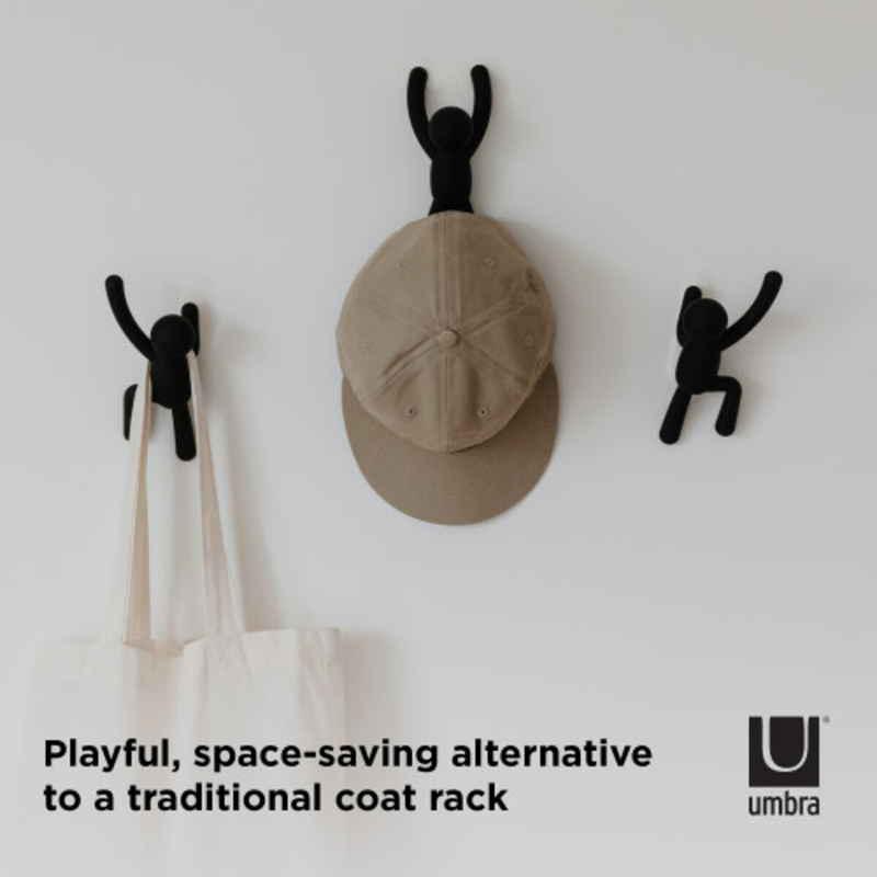 Umbraの人気キャラクター「バディ」たちがウォールクライミングをしているようなウォールフック3個セットです。