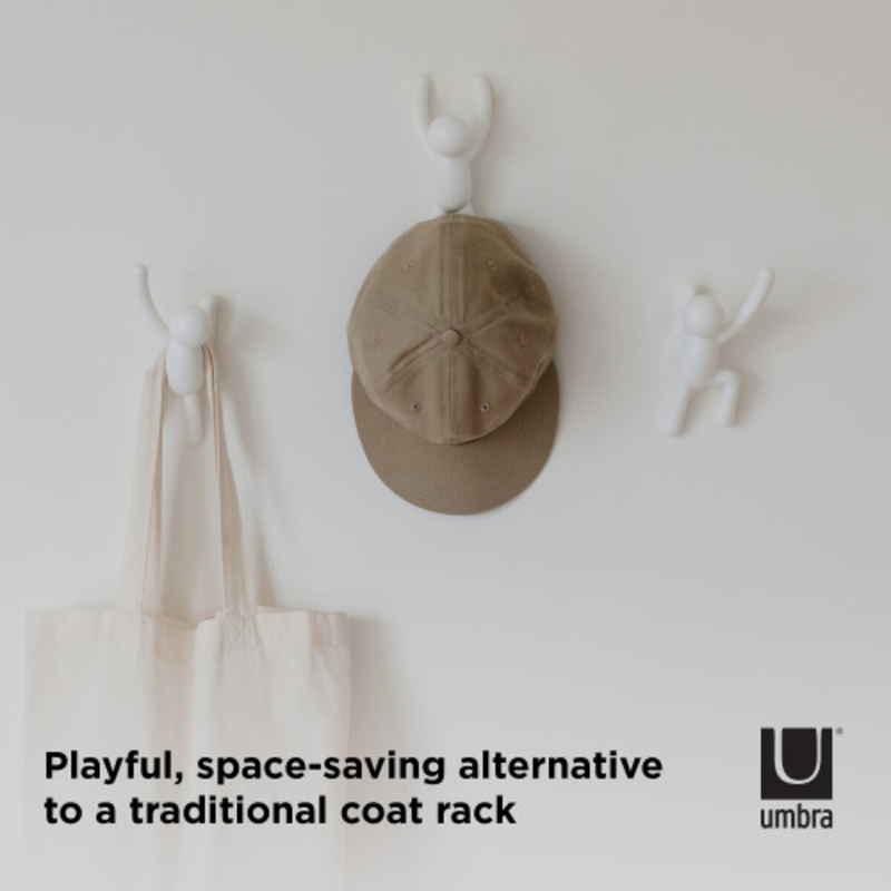Umbraの人気キャラクター「バディ」たちがウォールクライミングをしているようなウォールフック3個セットです。