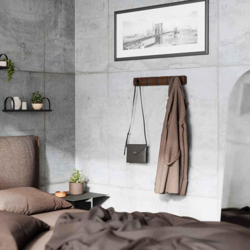 壁に取り付けて使うので、限られたスペースでもコートやカバン等を引っ掛けられて便利です。