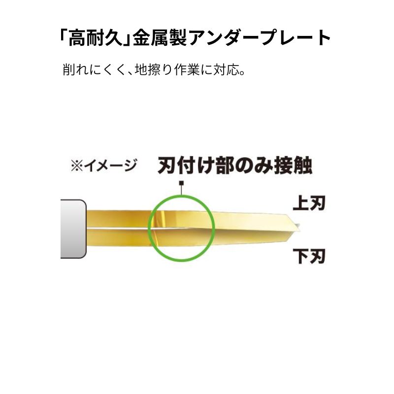 ・T字型の刃で草刈り刃物を左右に振らず、前方に推し進めるだけで刈込可能