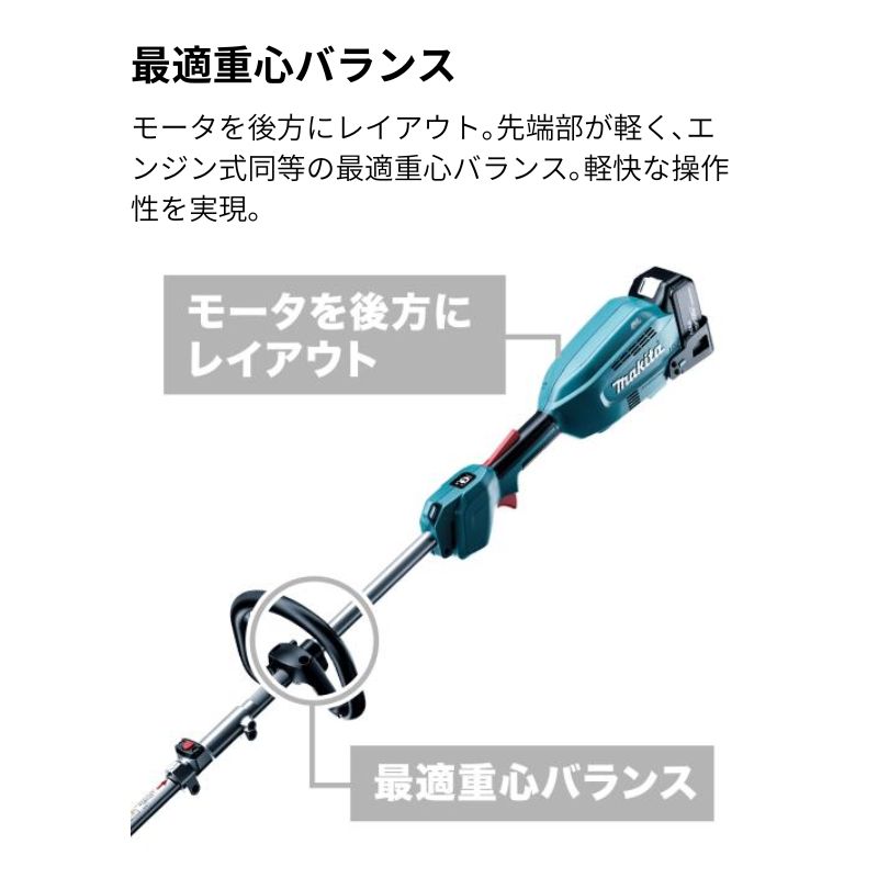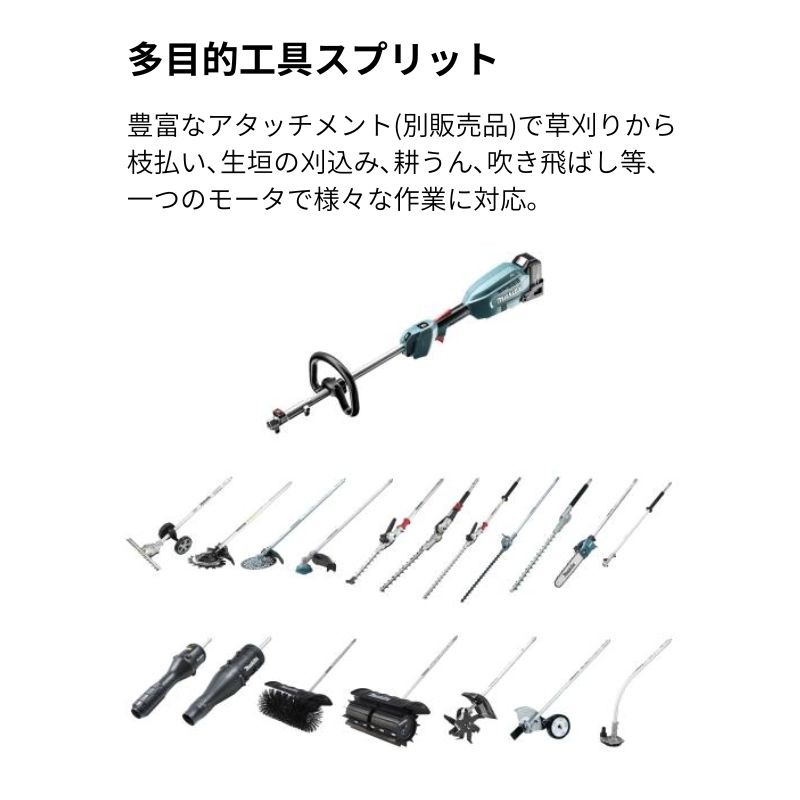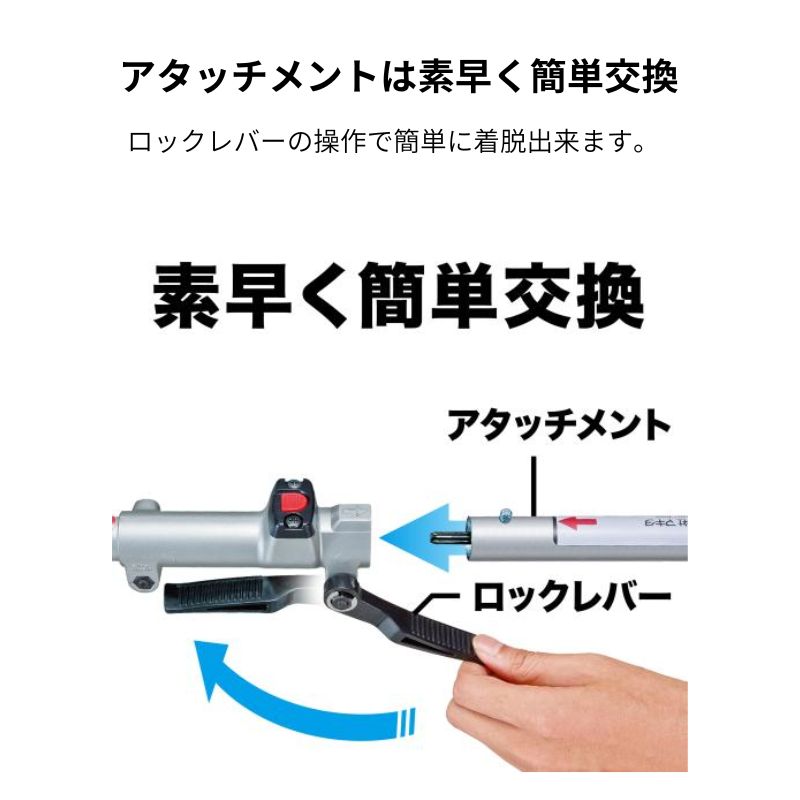 ・充電式スプリットモータにグラウンドトリマアタッチメント標準付属モデル