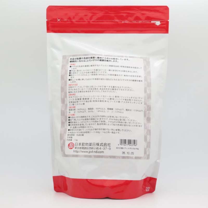 本品はメダカ用です。これ以外の目的には使用しないでください。開封後はチャックをしっかりと閉めて保管し、早めに使い切ってください。直射日光・高温多湿を避けて保管してください。小さなお子様の手の届かない場所に保管してください。本品はお断りなく仕様を変更する場合があります。