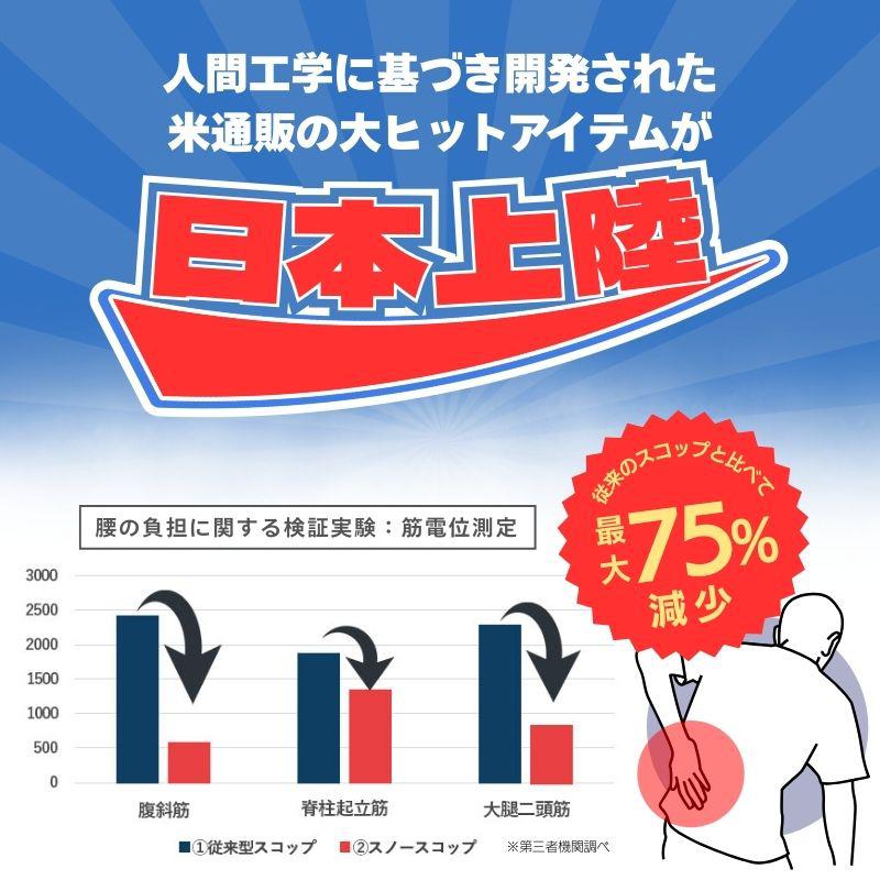 立った姿勢のまま雪を掻き出して投げられるスノースコップと、