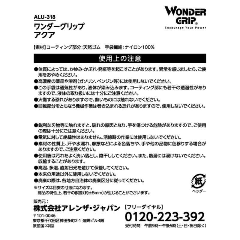 【10組まとめ売り】 アクア天然ゴムコーティング LL 10枚 ALU-318 ブルー 青 アクア ワンダーグリップ WG318 セット販売 作業手袋 アレンザ ユニワールド