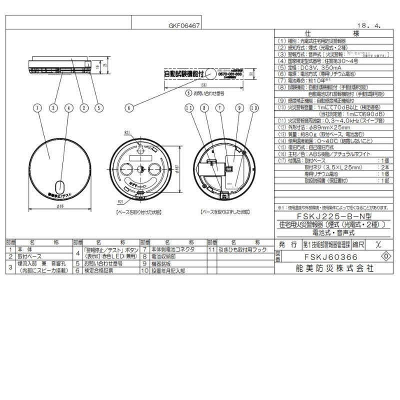 [即納在庫品] 能美防災 光電式住宅用火災警報器 FSKJ225-B-N 3個セット 煙感知タイプ ナチュラルホワイト FSKJ225-B-N