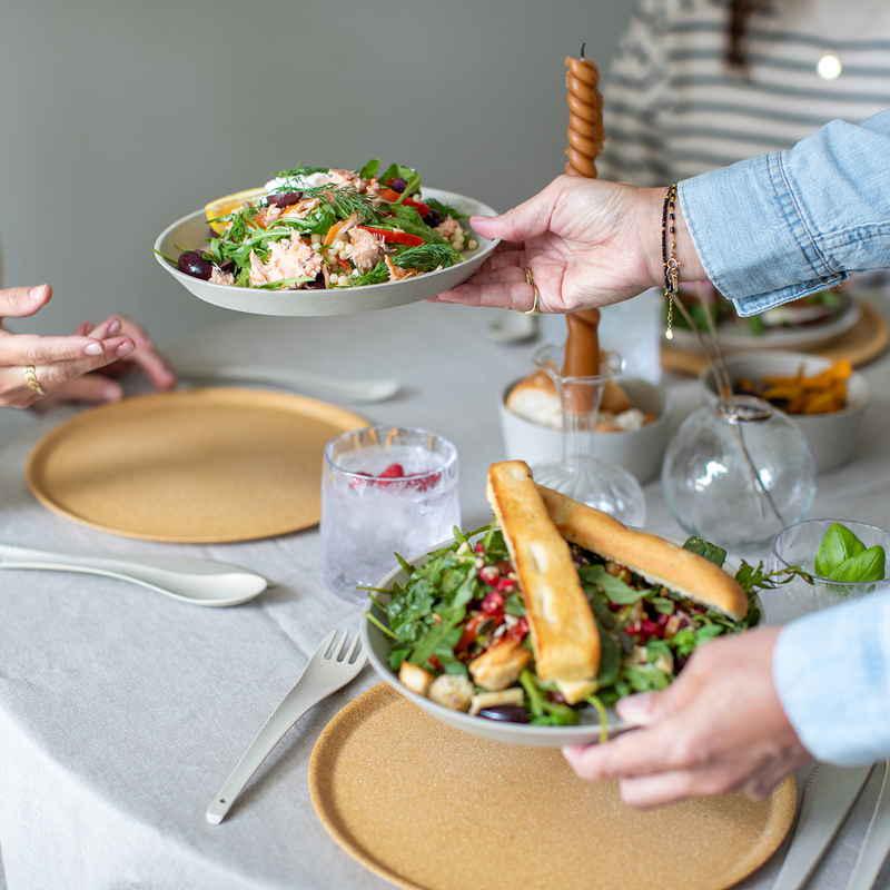 デイリー使いに最適なプレート25.5cm 同色4枚入り 軽くて割れにくい ナチュラル素材で地球に優しい「Koziol Connect」シリーズ 身体と環境に優しい スタッキングでスッキリ収納