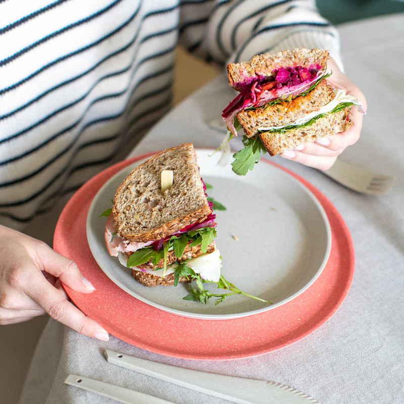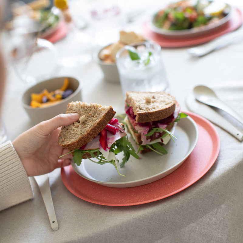 デイリー使いに最適なプレート25.5cm 同色4枚入り 軽くて割れにくい ナチュラル素材で地球に優しい「Koziol Connect」シリーズ 身体と環境に優しい スタッキングでスッキリ収納