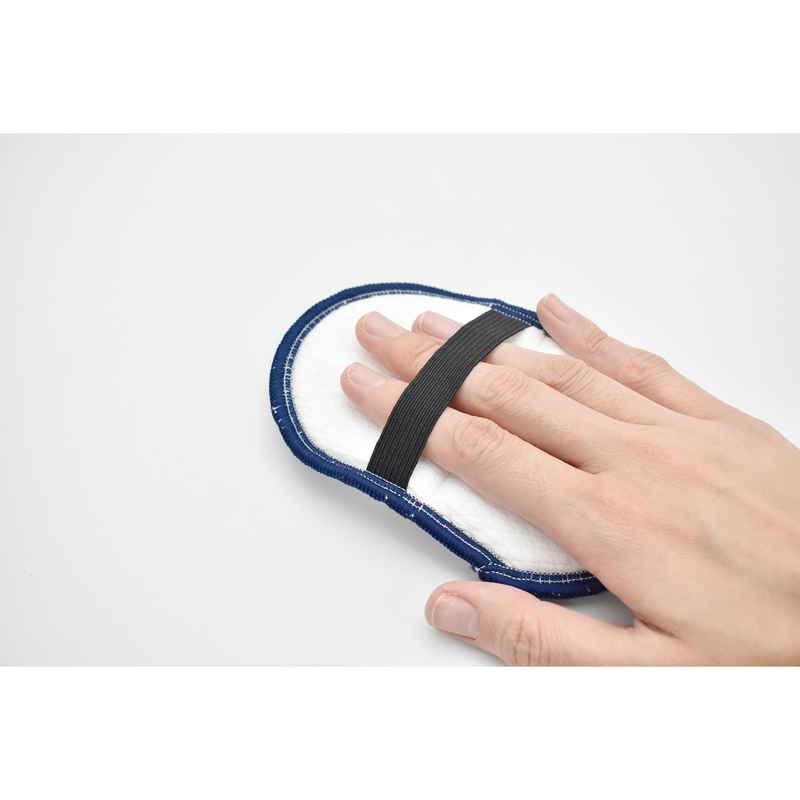 ゴムバンド付きで手に固定できるから、角や側面を拭き取りやすいです。