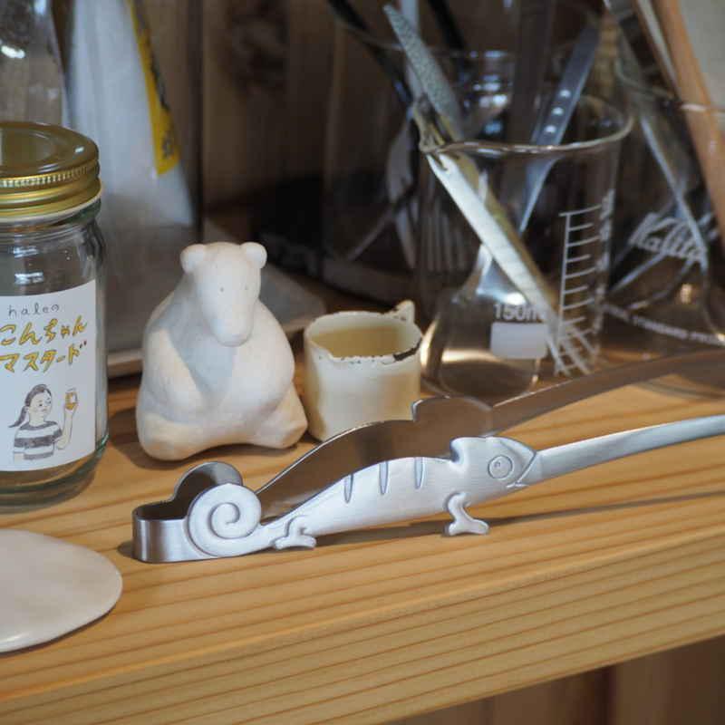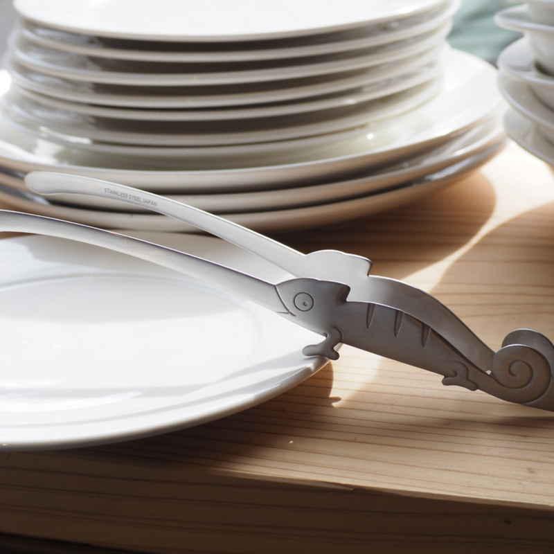 食卓を楽しく演出するカメレオンをモチーフにしたステンレス製のトングです。
