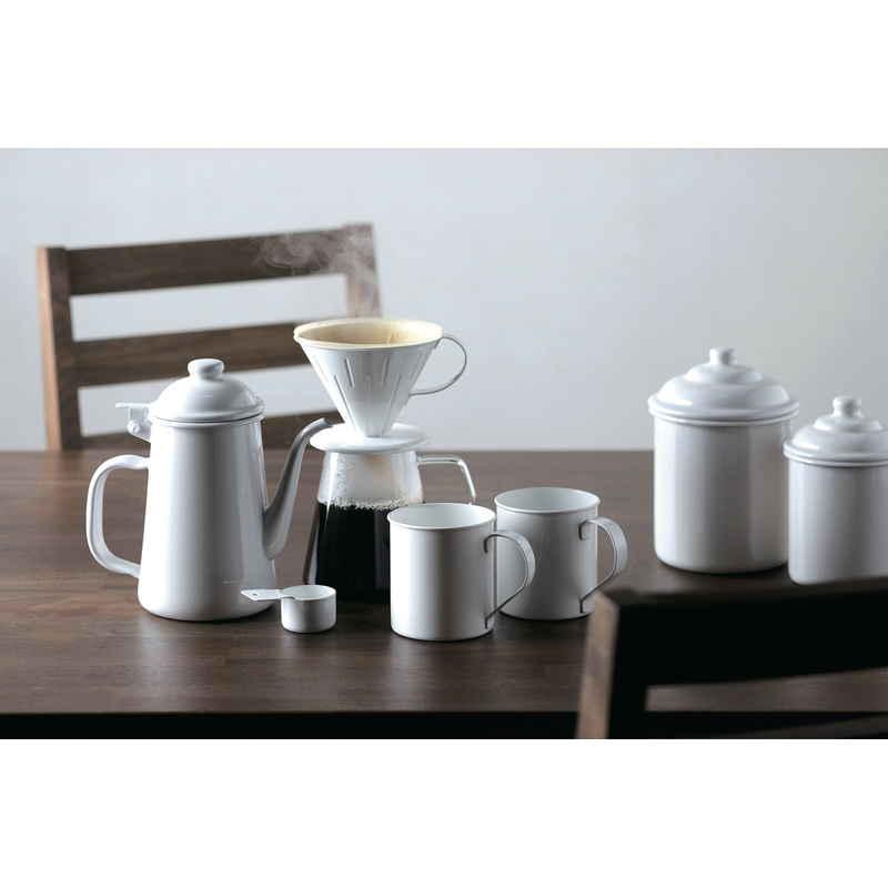 ホーロー仕上げのマグカップ 280ml 「Blanc」シリーズのコーヒーアイテム ちょっと一息つきたいときに 艶やかな質感、無駄のないデザイン ホーロー製品について