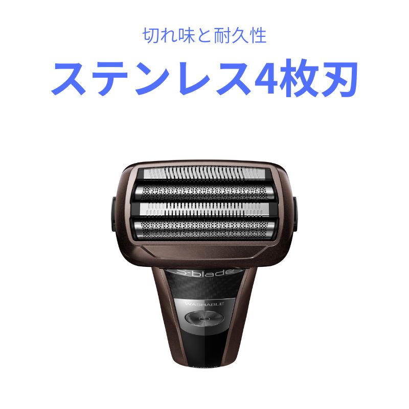 れた切れ味と耐久性のステンレス刃を外・内刃に採用した往復式4枚刃シェーバー