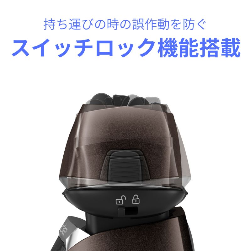 持ち運びの時の誤操作を防ぐスイッチロック機能搭載