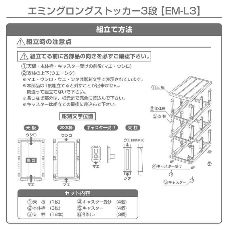 JEJアステージ 収納ケース エミング ロングストッカー 3段 103039 押入れ ホワイト 白 103039
