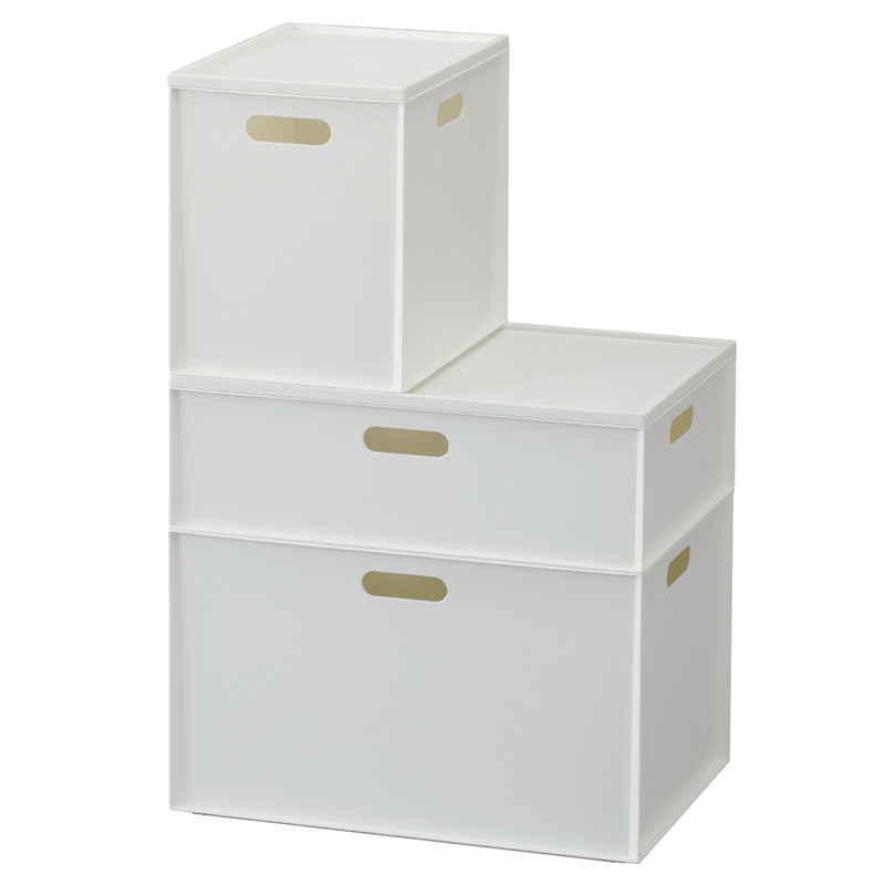 ・縦型の収納目安、3サイズでスタッキング可能