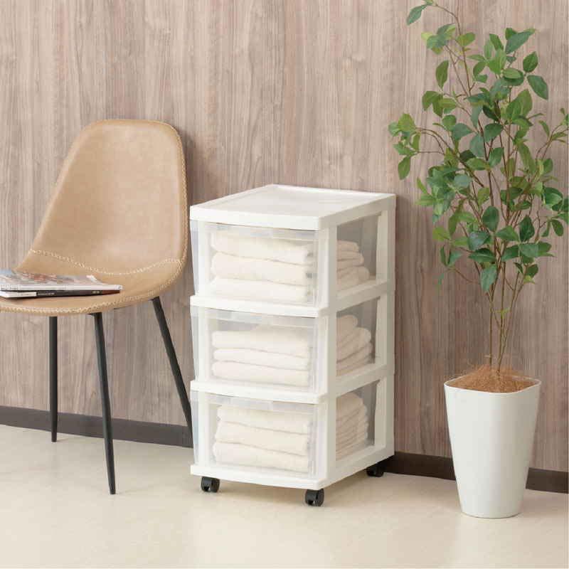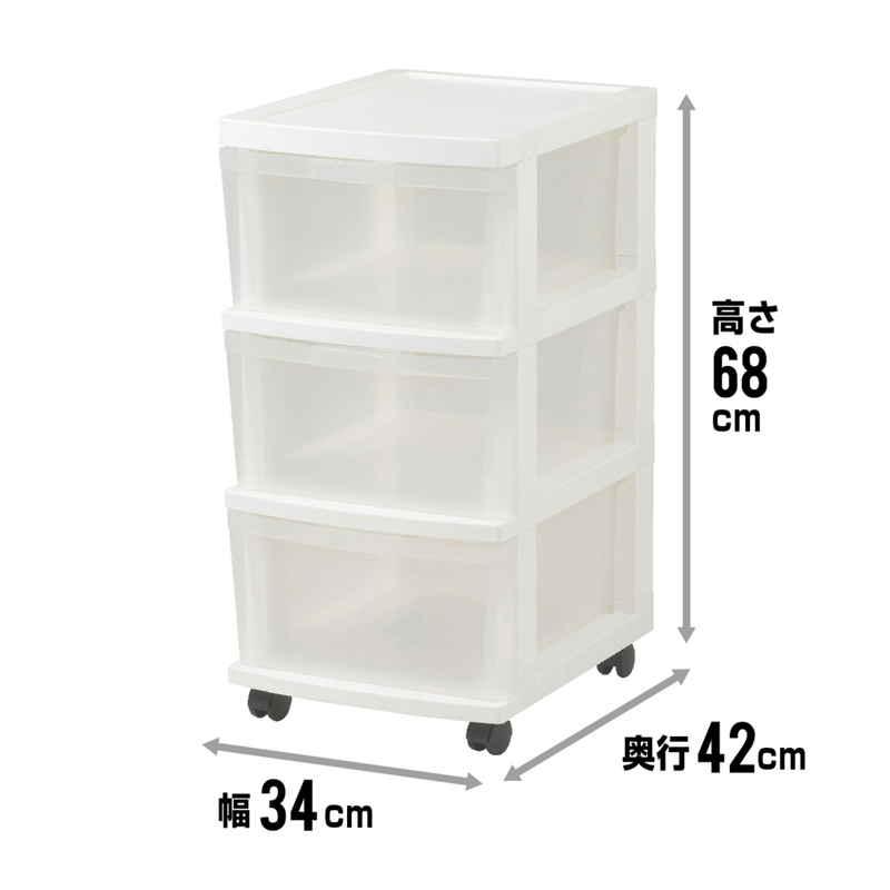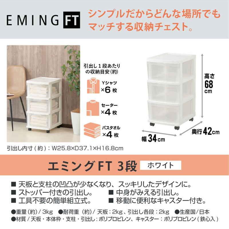 JEJアステージ チェスト 幅34cm エミングFT 3段 ホワイト 深型 ストッカー キャスター付き