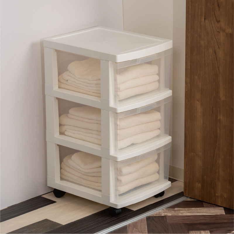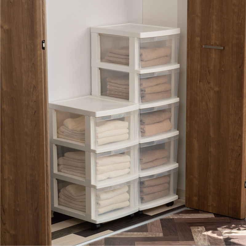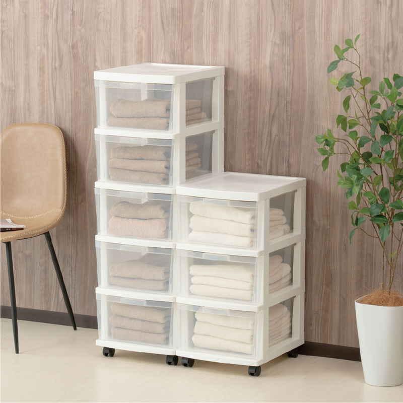 ・引出し1段あたりの収納めやす:Yシャツ約6枚、セーター約4枚、バスタオル約4枚