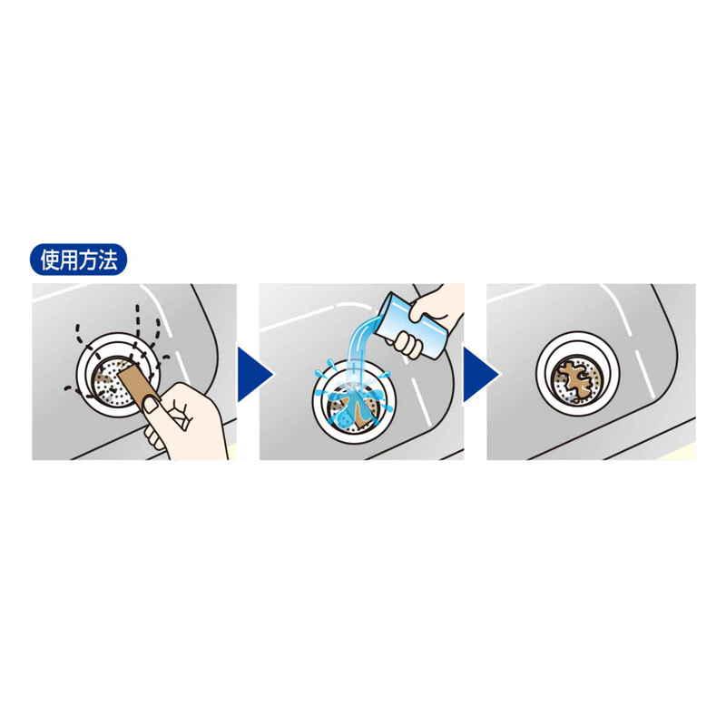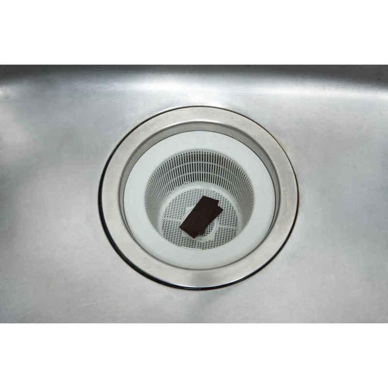 使用方法はラミネート袋から茶色のヨード紙を取り出し、排水口にポンと投げ込み水をかけるだけです。