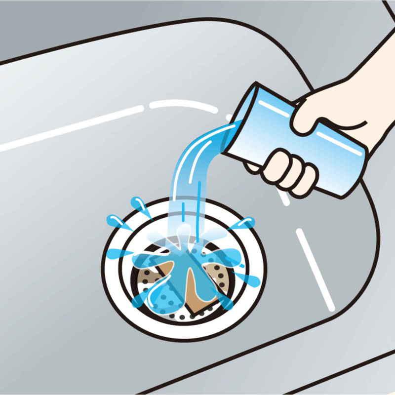 コップ2〜3杯の水をかけるとサット溶け、除菌をしてくれます。
