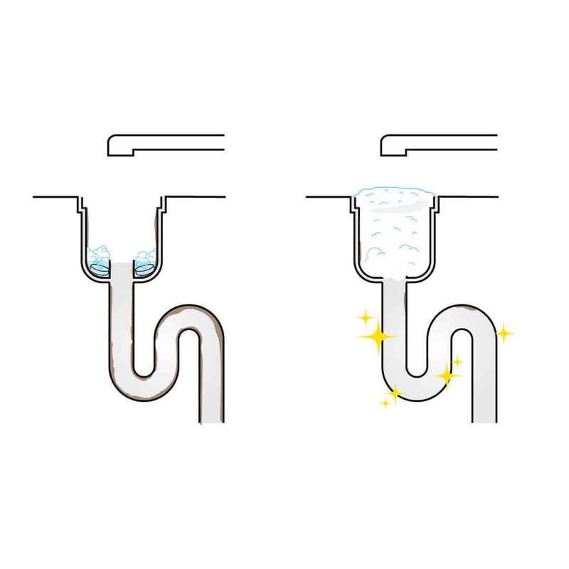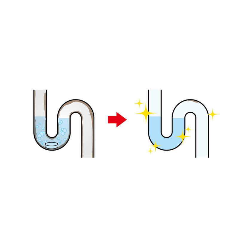この製品を投げ込み水を流すと泡がいっぱいになり、洗浄、殺菌してくれます。