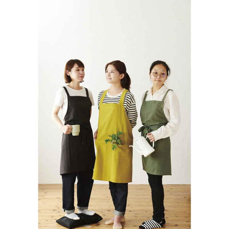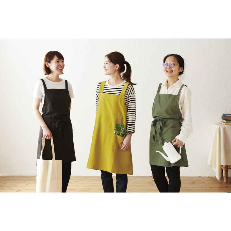 普段使いしやすいシンプルな先染めの無地柄エプロンです。
