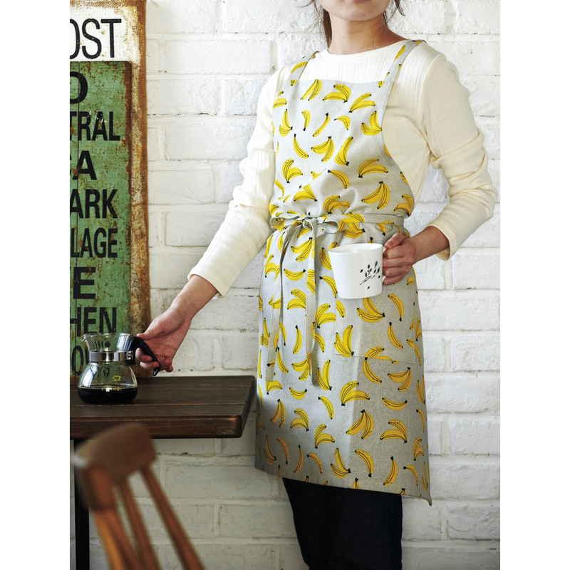 身に着けるだけで楽しい気分になるバナナ柄エプロンです。