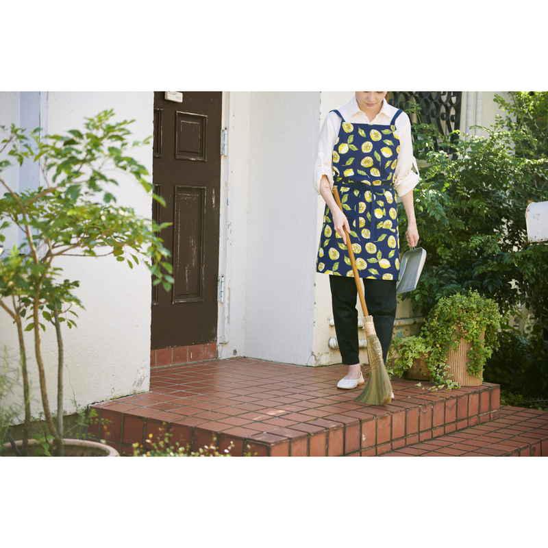 レップ エプロン 綿100% ポケット付き レモン柄 アグリューム ネイビー