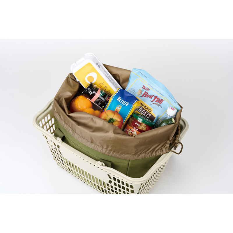 バッグはスーパーのレジかごにぴったりセットできる仕様で、まとめ買いにも安心な25Lの大容量です。