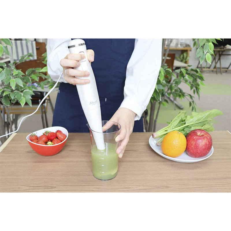 「ブレンダー」「ホイッパー」「チョッパー」を付けかえて、つぶす・まぜる・泡立てる・きざむができる優秀なブレンダーセットです。
