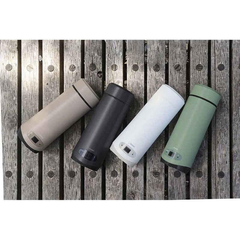 お出かけ先でひとり分のお湯が手早く沸かせる、便利な温調ボトルです。