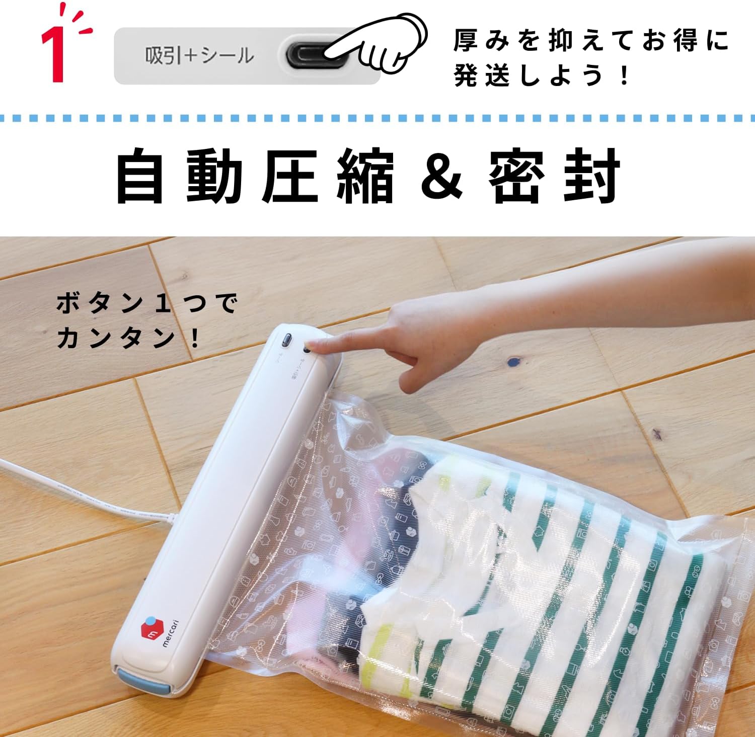 ボタンを押すだけで自動で圧縮&密封