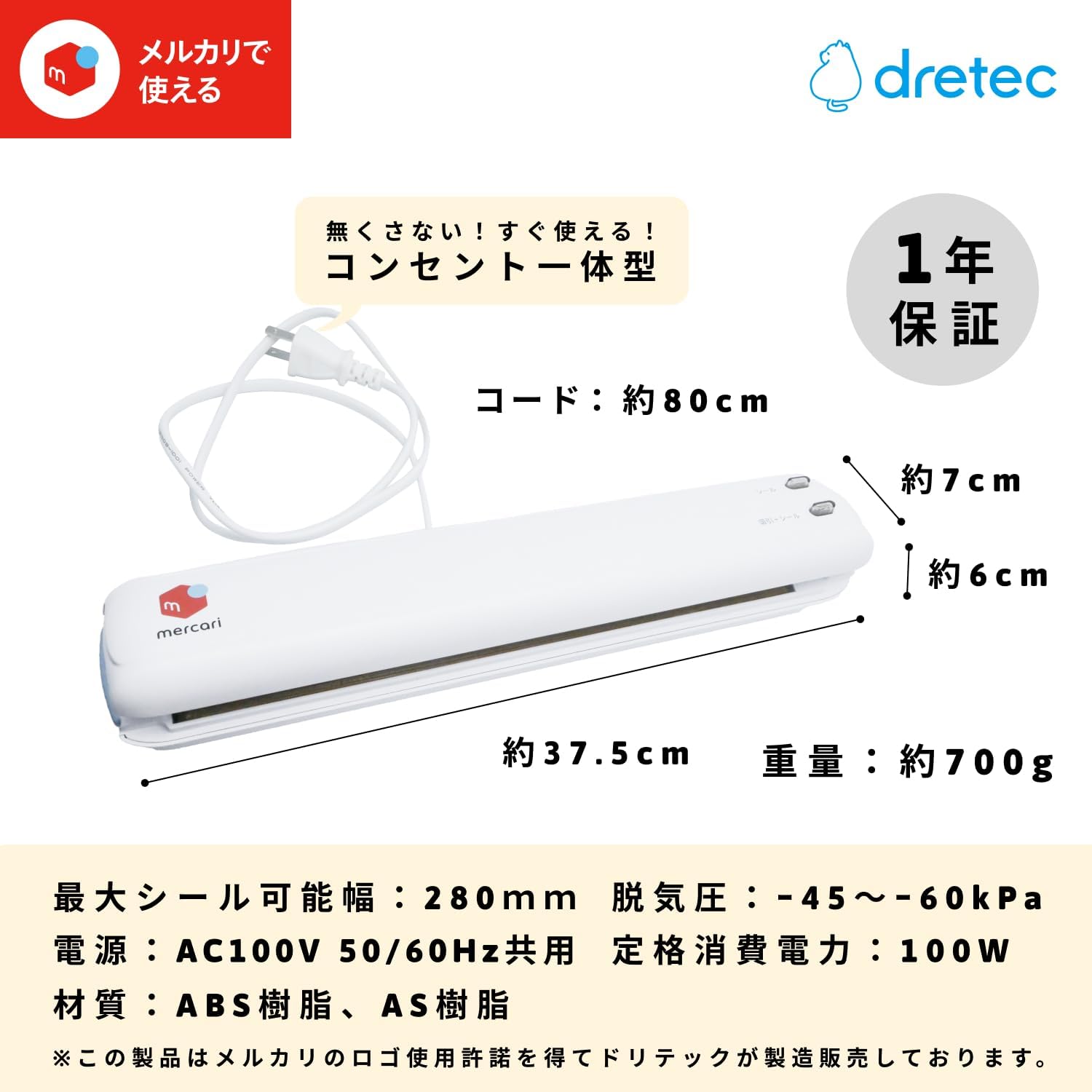 ドリテック メルカリ 衣類用圧縮シーラー 梱包圧縮機 メルカリシーラー VS-300WT