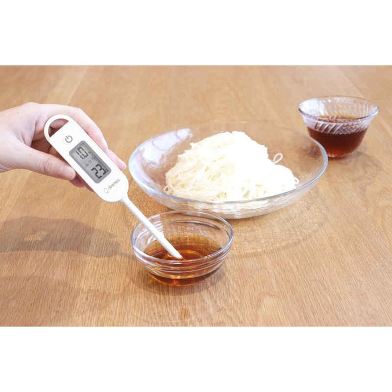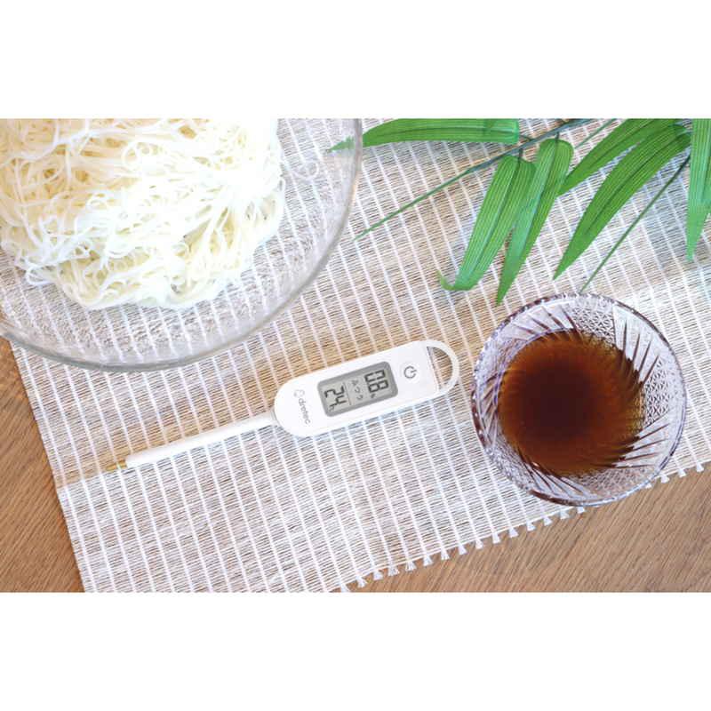 塩分と同時に温度も測定することができ、離乳食や介護食作りにも便利です。