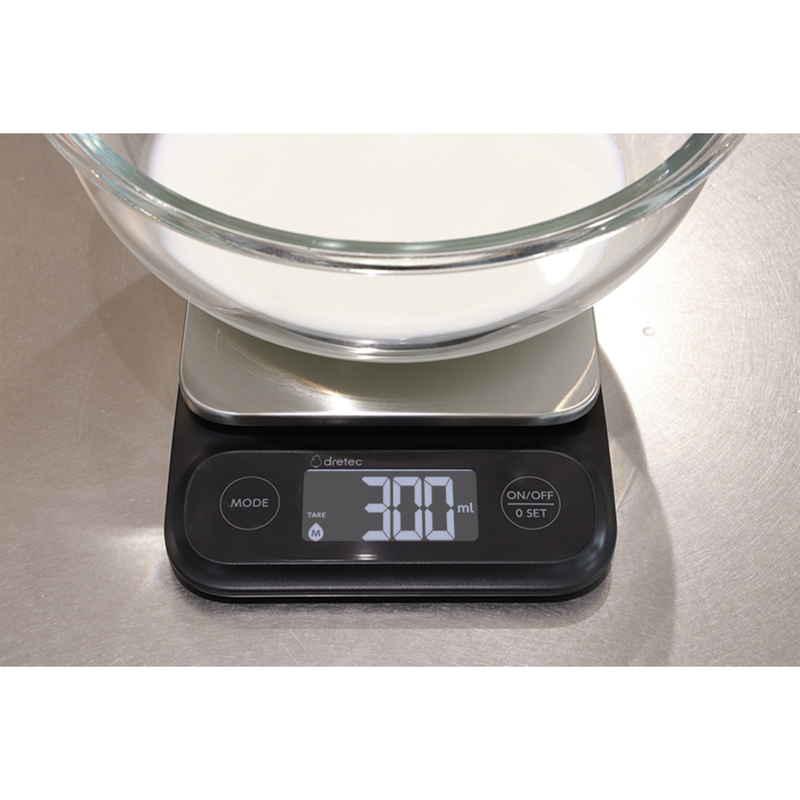 粉類などの「g」の重さはもちろん、水や牛乳などの液体の「ml」がはかれるキッチンスケールです。