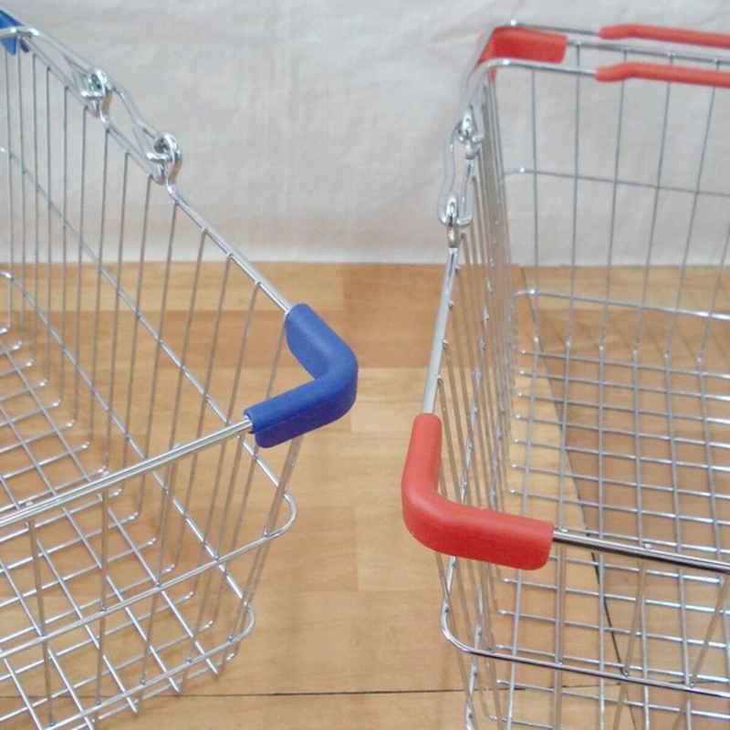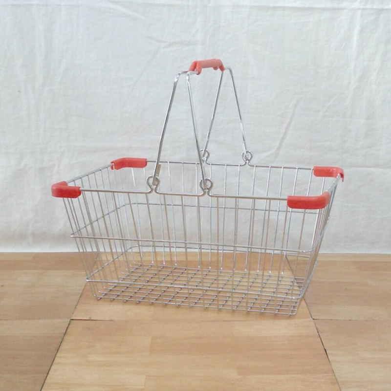 プラスチックの持ち手が付いたハンドル付きのワイヤーバスケットです。