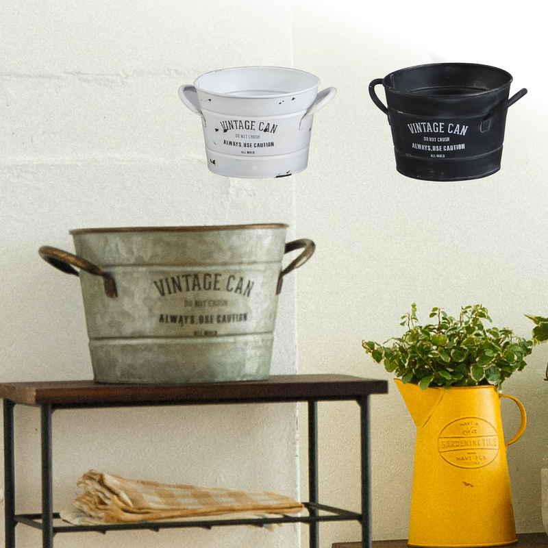 アビテ 小物収納 鉢 アイアンポット ジャルダン ラウンドカン S ヴィンテージ缶 インテリア アイアン