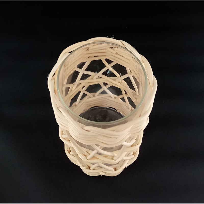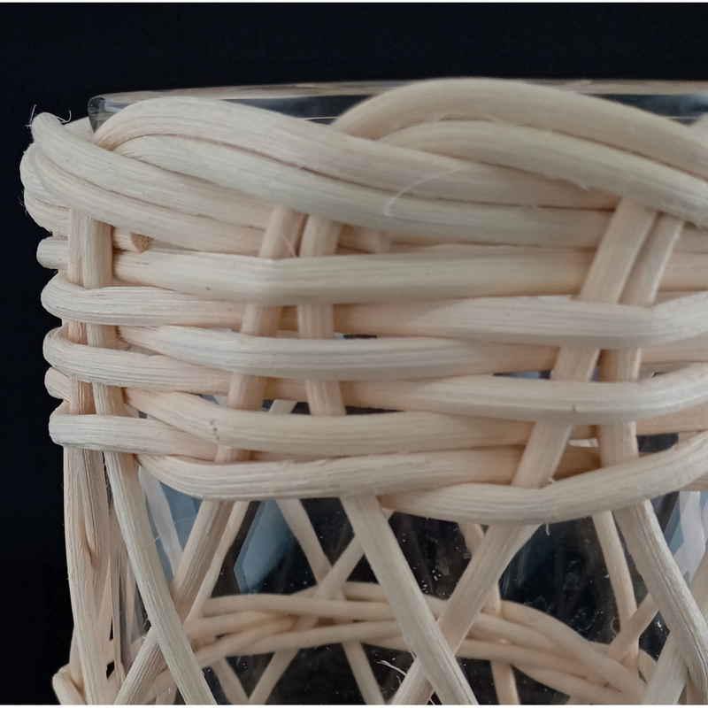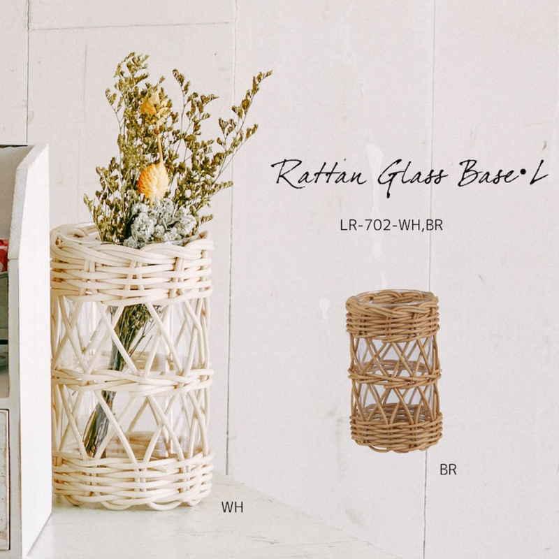 柔らかい印象を与えるラタンを使用したガラスベースです。