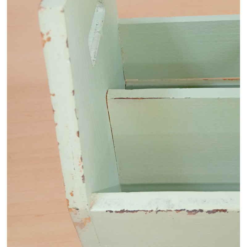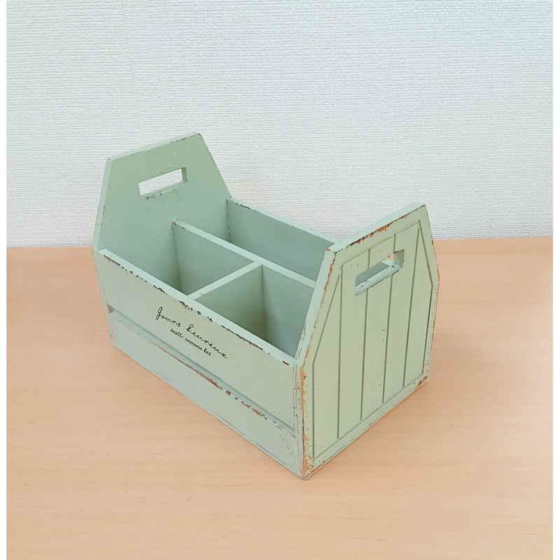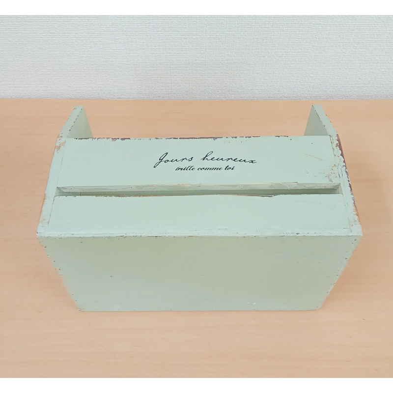 アンティークなペイント加工と柔らかな色味のハンドルボックスです。