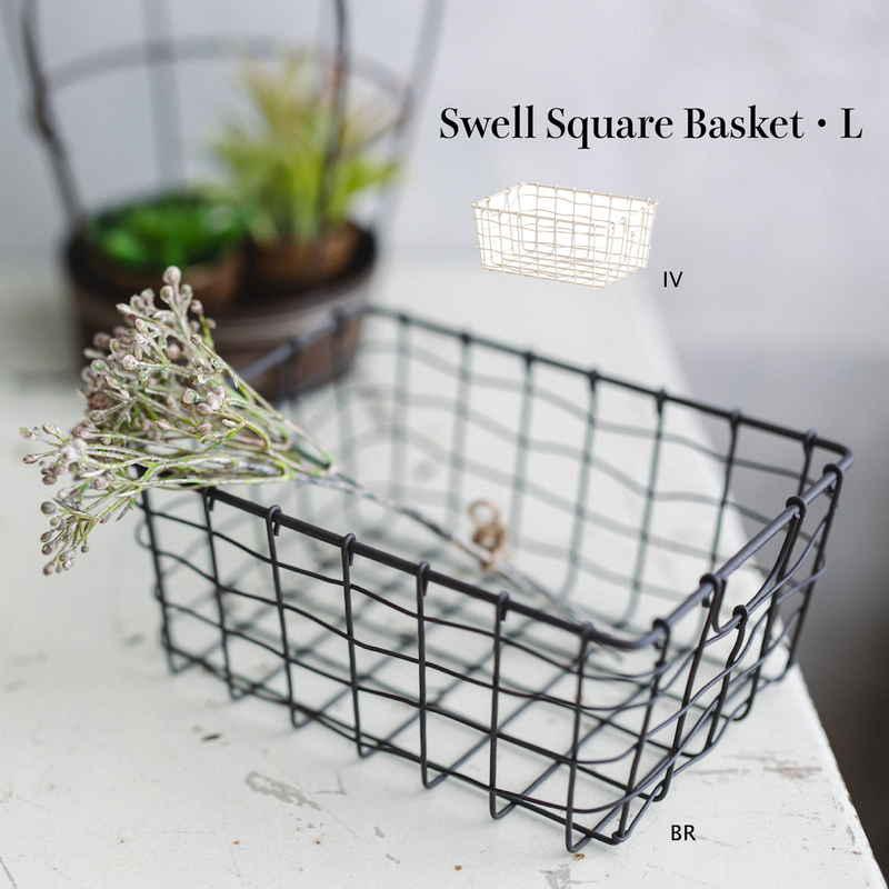 くにゃっと曲がったワイヤーが可愛いワイヤーバスケット『Lサイズ』です。