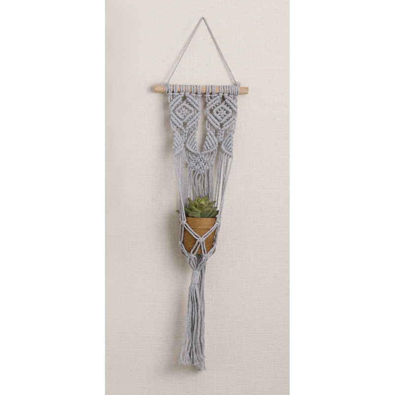コットンロープを編み込んで作られたマクラメ編みのハンギングプランターです。