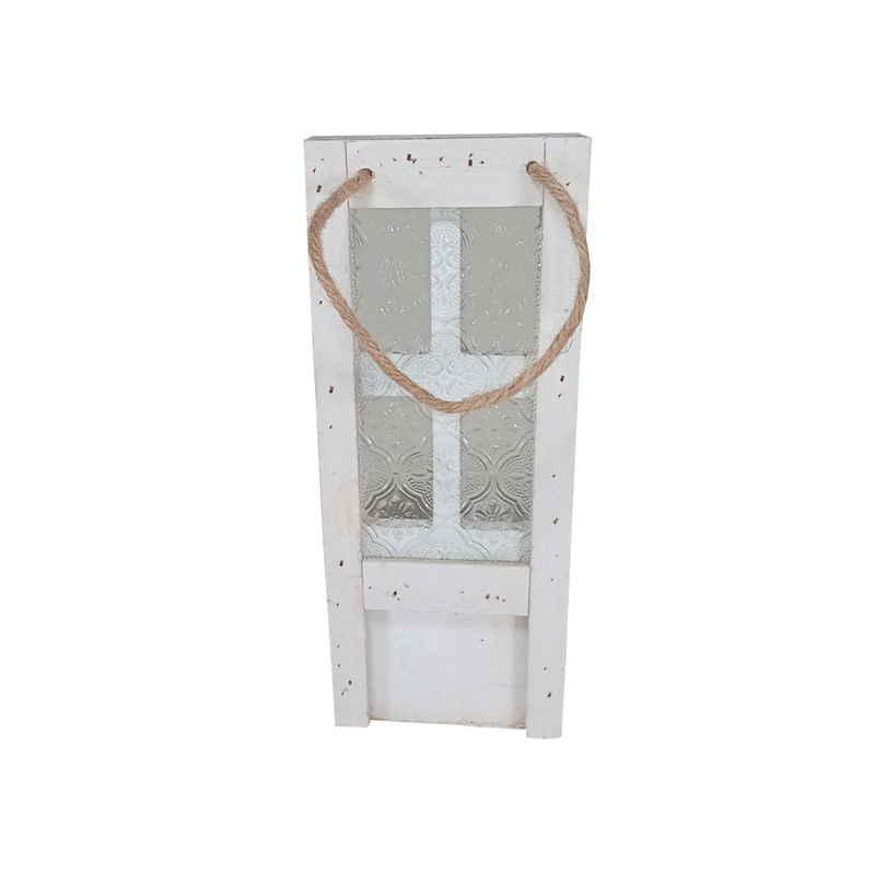 レトロな雰囲気の花柄ガラスがポイントの木製ガーデンポットです。