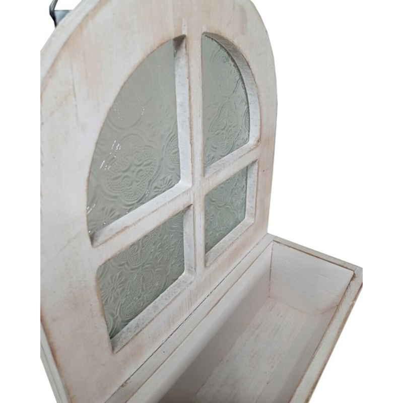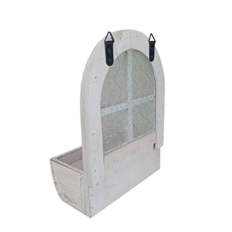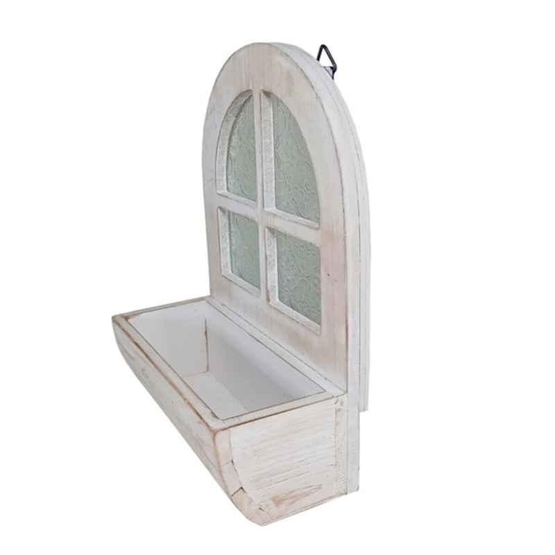 レトロな雰囲気の花柄ガラスがポイントの木製ガーデンプランターです。