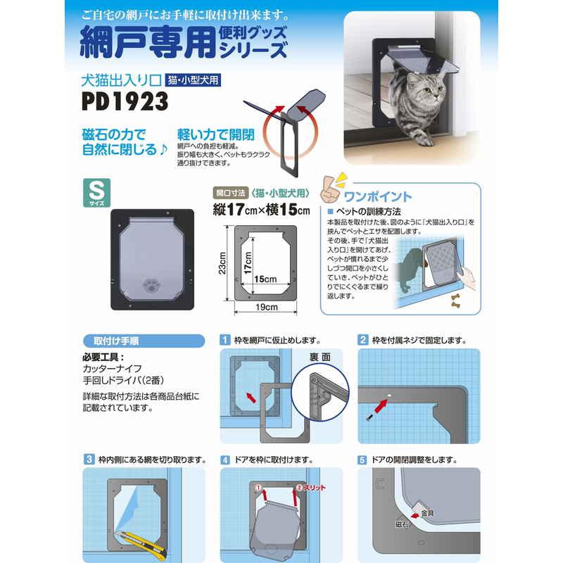 タカラ産業 網戸専用 犬猫出入口 猫・小型犬用 S